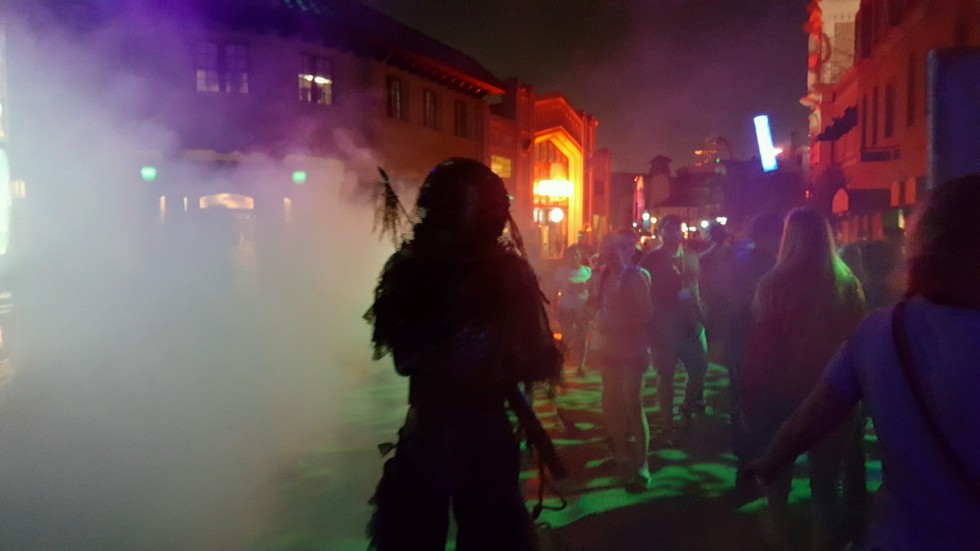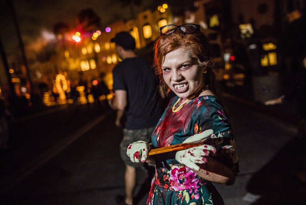 In addition to the nine haunted houses, there are two live stage shows: the popular Bill & Ted's Excellent Halloween Adventure , which focuses on pop culture bits and lots of sexy dancing, and Academy of Villains House of Fear . There are also five scare zones that have been described as haunted houses without roofs. Be on the lookout for "Survive Or Die Apocalypse" in New York, "Chance in Hell" in Avenue of the Stars, "Vamp '55" in downtown Hollywood, "Dead Man's Wharf" in San Francisco and "Lair of the Banshee" in Central Park. "These five environments are also joined by roaming hoards of chainsaws," Braillard pointed out. So if you don't like chainsaws, you're in trouble.
