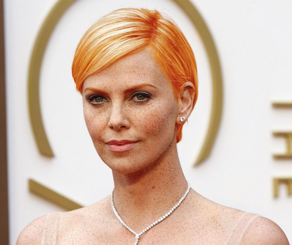 The South African-born actress with a stately, model-like figure was born a blonde with blue eyes. Charlize dyed her hair black in the lead role in Aeon Flux as a badass assassin and managed to pull it off in convincing fashion. Going the way of a redhead is a drop in the bucket for this versatile actress.