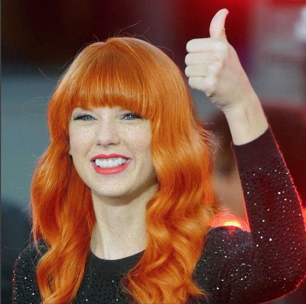 The fiercely talented Taylor Swift fluctuates between blonde and brunette locks at times, so I can see her sporting the redhead look. Besides, her arch nemesis (Kanye West) made the ranga list, so she has to try and one-up Kim's hubby.